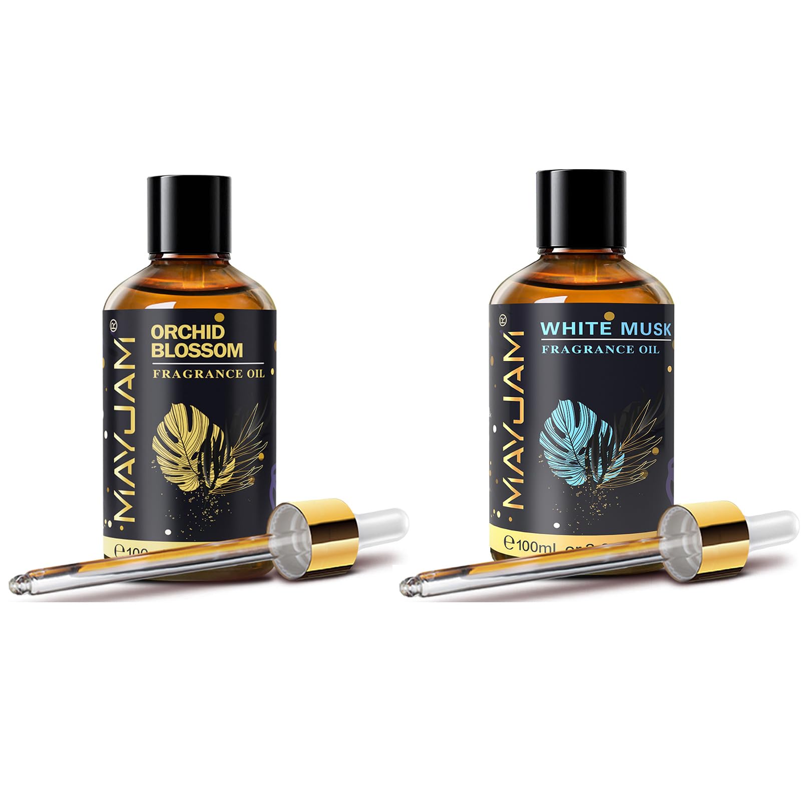 Package Included: 1 X MAYJAM 100ML Orchid Blossom Fragrance Oil 1 X MAYJAM 100ML White Musk Fragrance Oil