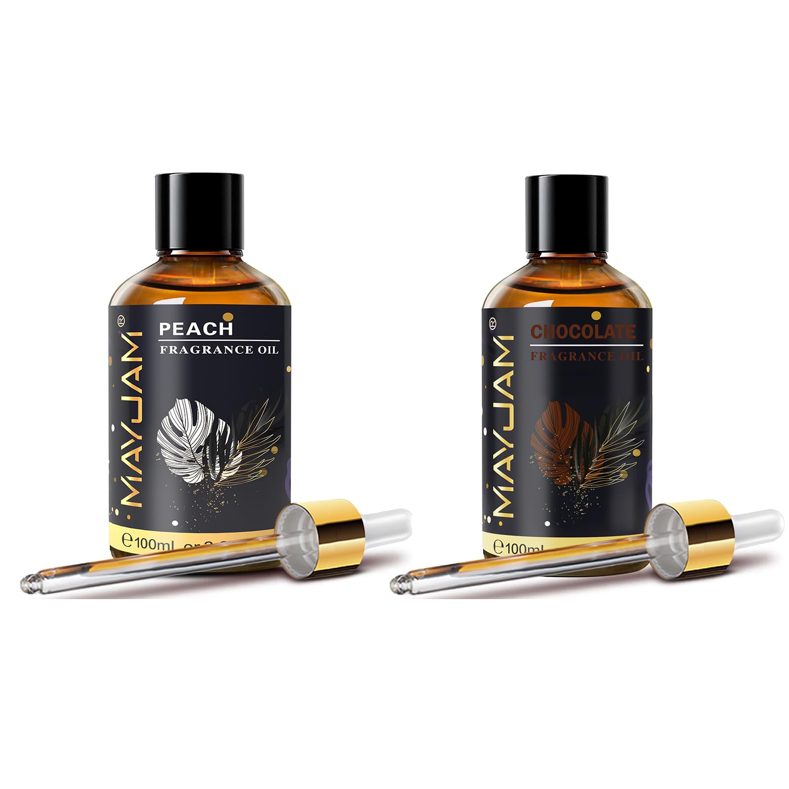 Package Included: 1 X MAYJAM 100ML Peach Fragrance Oil 1 X MAYJAM 100ML Chocolate Fragrance Oil