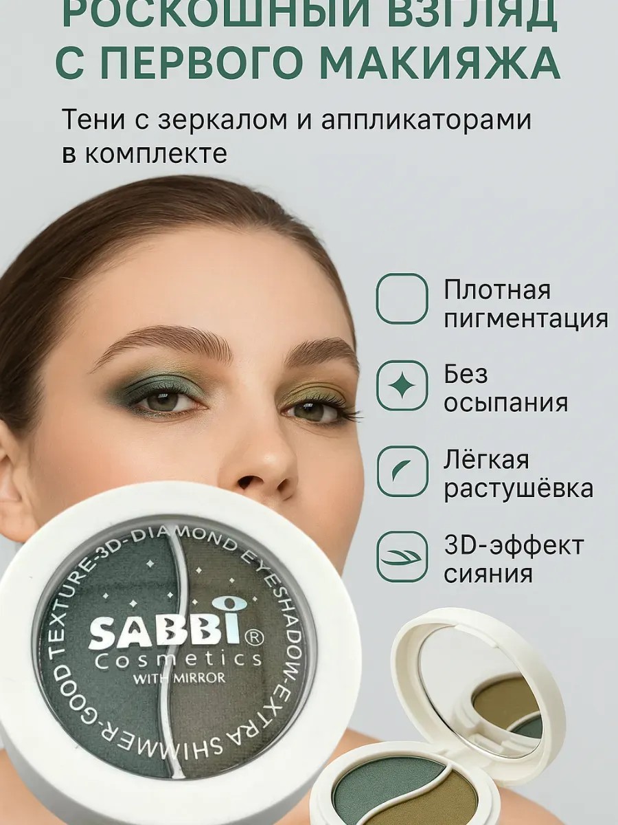 Невероятно выразительный взгляд — с первого нанесения! Представляем вам двойные тени для век с зеркалом и мягкими аппликаторами, созданные для тех, кто ценит комфорт, насыщенность и безупречный результат. Это идеальное сочетание глубокого зелёного и благородного оливкового оттенков в одной компактной упаковке. Подойдут как для дневного, так и вечернего макияжа, идеально растушёвываются и не осыпаются в течение дня.