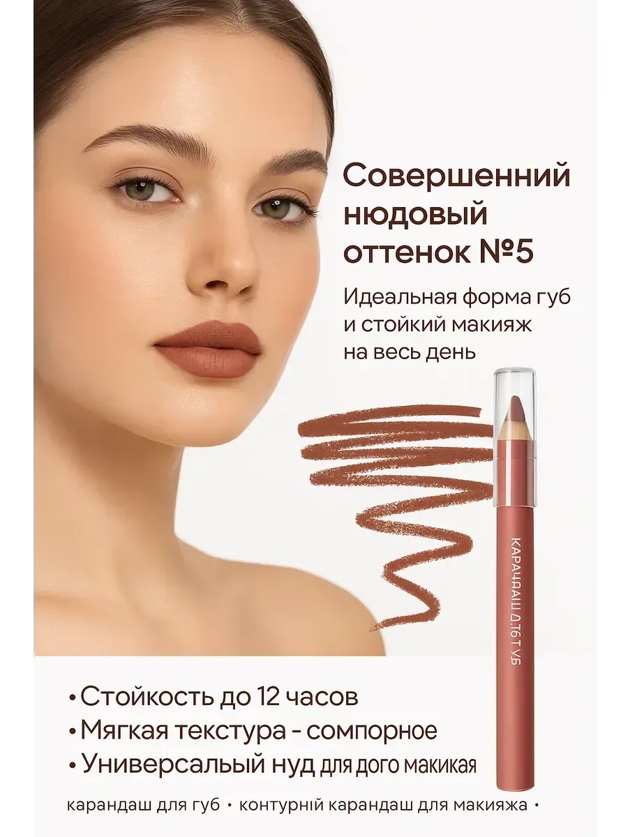 Матовый нюдовый карандаш для губ №5 — это сочетание стойкости, красоты и практичности. Он подчеркнёт индивидуальность, поможет создать естественный образ и подарит уверенность в себе на весь день.