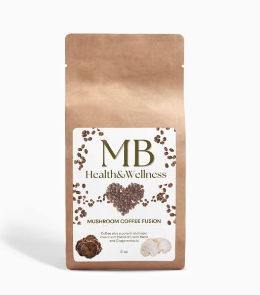 MB Health & Wellness Mushroom Coffee Fusion Lion's Mane and Chaga Extract Blend Dark Roast Arabica 4 oz