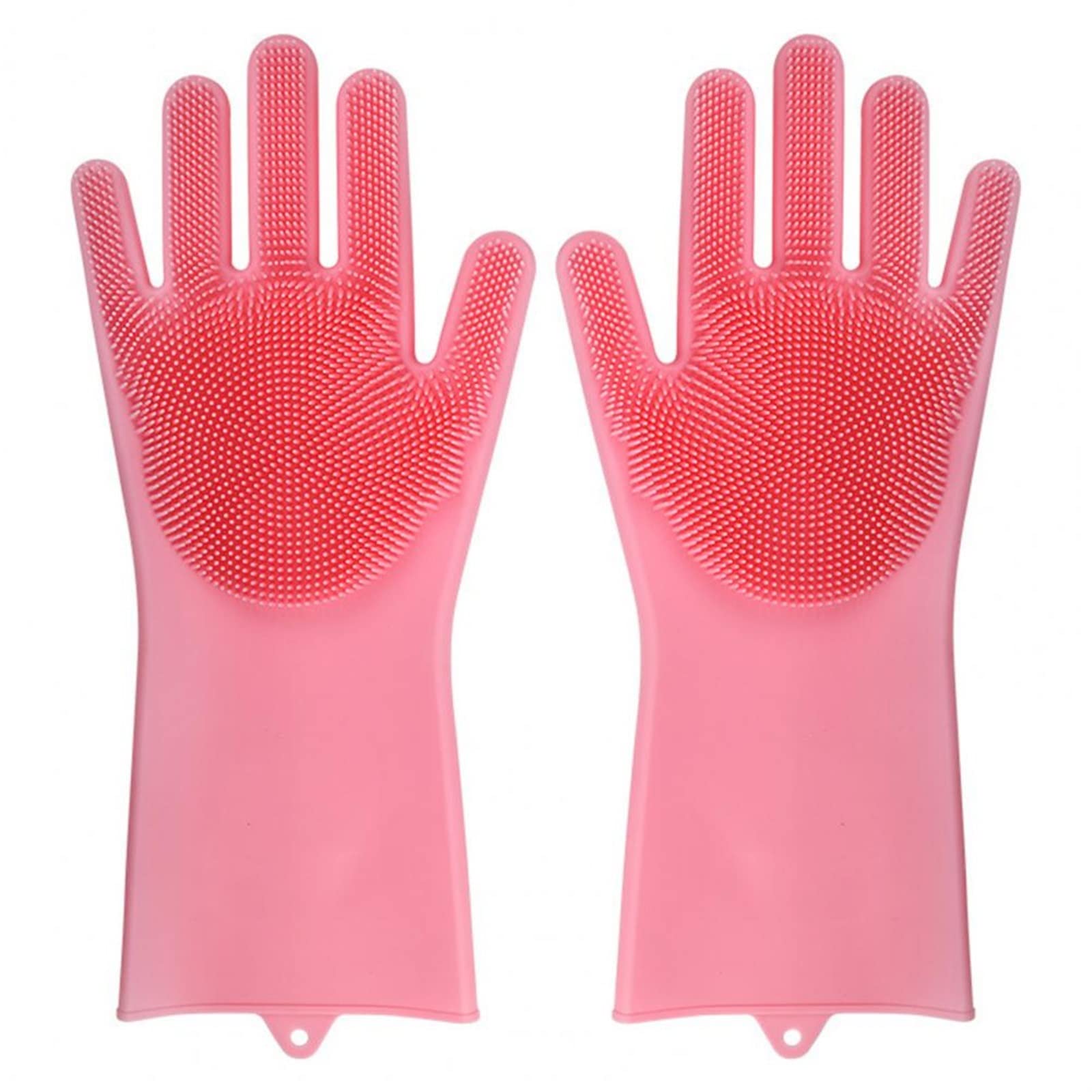 MBNVBNM Cleaning gloves Convenient Household Kitchen Scrubber Silica Gel Cleaning Gloves Dishwashing Gloves Household Heat Resistance (Color : Pink Size : X-Large)