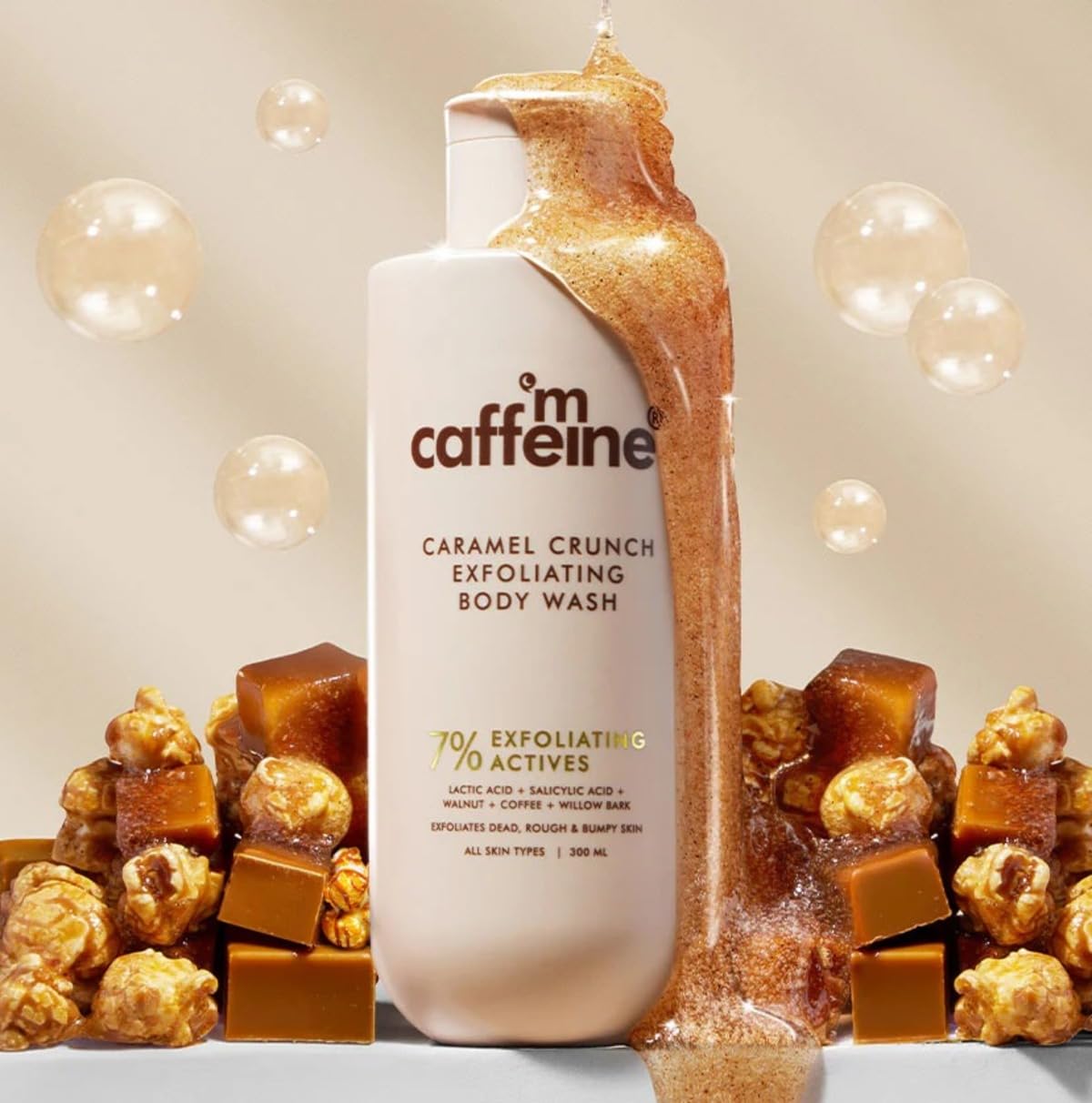 Mcafeine Exfoliating Caramel Crunch Body Wash Refreshing Shower Gel with Natural Scrub 300 ml