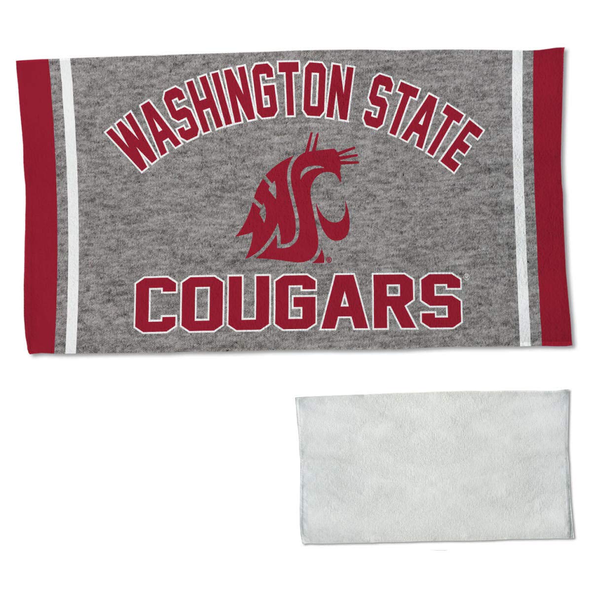 Officially Licensed and Approved Product. Perfect Use as a Workout, Yoga, Fitness, Gym, Dorm, Hand, Running, Golf, and Caddie Towel. Washington State WSU Sweatshirt Style Graphics with Authenticity Hologram Included. Double-Stitched Sewn Border with Printed Graphics, Machine Washable, Made in the USA. Towel is 22 in x 42 in in Size and made of Soft Thick 100% Polyester on the Front and 100% Cotton on the Back.