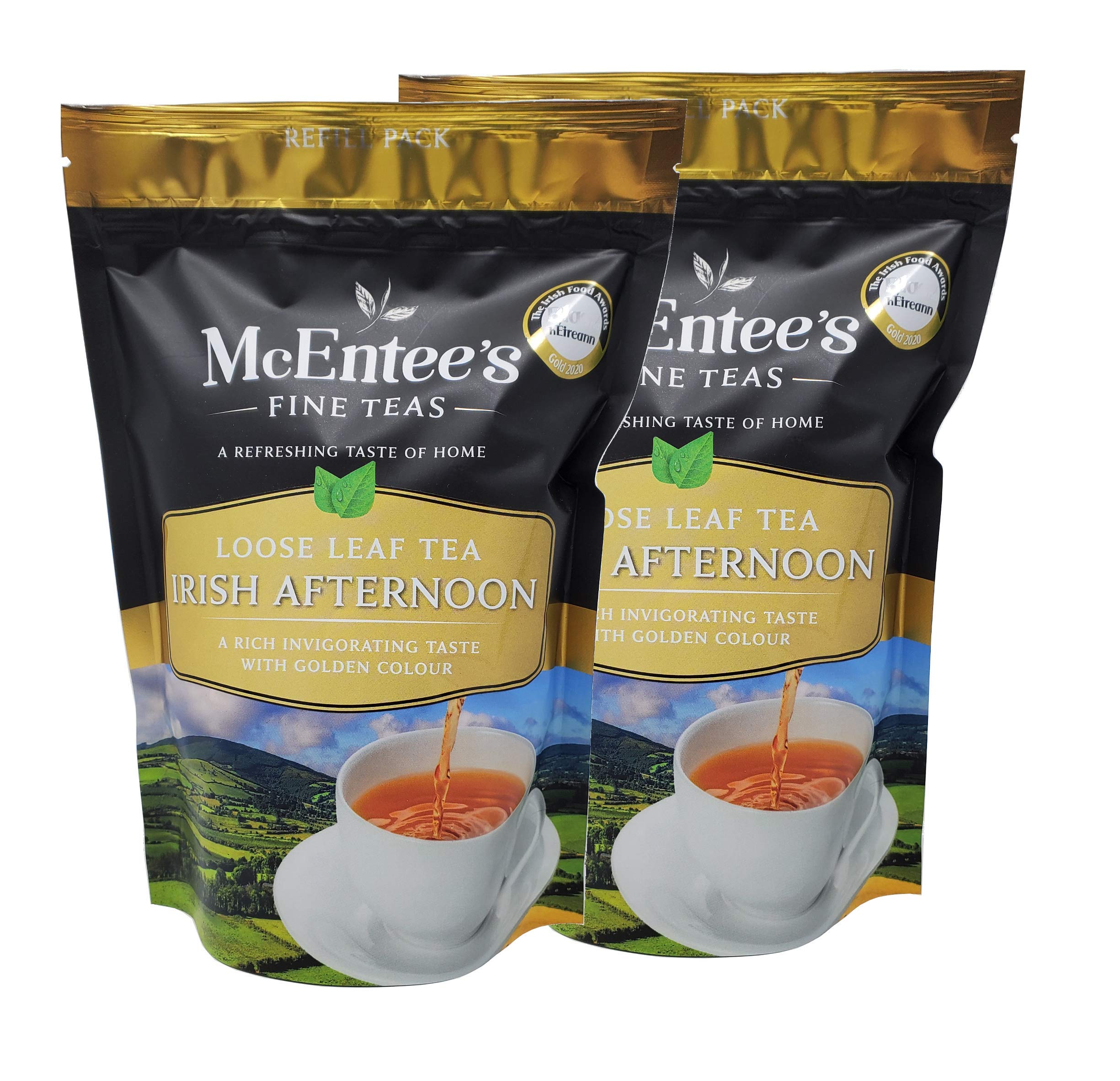 McEntee's Irish Afternoon Loose Tea (Lot de 2) Sac de 250 g - Thé en vrac - Un mélange fort et savoureux de thés noirs en feuilles de Ceylan, du Kenya et d'Assam