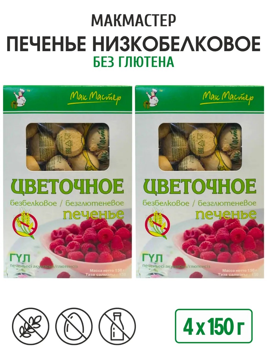| Комплектация | Печенье без глютена безбелковое Цветочное 4 шт по 150г |