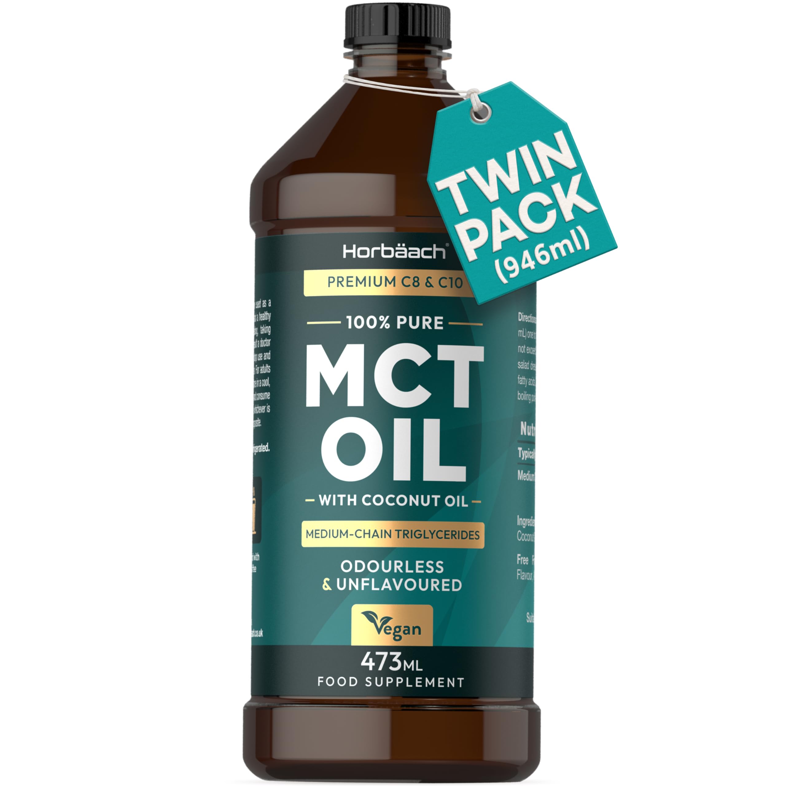 MCT oil is a supplement made from a type of fat called medium-chain triglycerides. MCT molecules are smaller than those in most of the fats you eat. This makes them easier to digest and absorb & to turn them into energy you can use. The way people get MCT oil from coconut oil is through a process called fractionation. This separates the MCT from the original oil and concentrates it. Horbaach MCT Oil Liquid contains just under 500ml of pure coconut-sourced MCT Oil, to get you physically & mentally aligned with your goals! You can mix it with your morning coffee, juice, or your daily smoothies to get the extra boost needed. At Horbaach we have a wide range of MCT Oil supplements such as capsules, soft gels, powders, and liquids, so you can choose whichever suits your needs best. INGREDIENTS Medium Chain Triglyceride Oil, Coconut Oil. DIRECTIONS For adults, take one (1) tablespoon (15 mL) one to three times daily, preferably with food. MCT Oil can be used in salad dressings, sauces or cooking as a source of beneficial fatty acids. Do not use MCT Oil for frying due to low boiling point. Do not exceed stated dose. SAFETY WARNING Food supplements must not be used as a substitute for a varied and balanced diet and a healthy lifestyle. If you are pregnant, nursing, taking any medications or have any medical condition, consult your doctor or healthcare professional before use. If any adverse reactions occur, immediately stop using this product and consult your doctor. If seal under cap is damaged or missing, do not use. Keep out of reach of children. Not intended for use by persons under the age of 18 years. LEGAL DISCLAIMER We go to great efforts to ensure that the information on this page is accurate at the time that the page was last edited. As we are constantly reviewing and developing our products to meet our consumer needs, consumers, particularly those that suffer from allergies and intolerances, should always check product labelling, warnings, and directions provided with the product that is delivered, prior to use or consumption. Packaging may vary. See moreHORBAACH MANUFACTURERS - Through 40+ years in the health product industry, we source premium supplements, produced to high quality control standards following GMP & BRC guidelines. SUITABLE FOR: Horbaach MCT Oil is vegan & vegetarian friendly and contains no artificial colours or preservatives. It's also keto diet friendly, and suitable for both men and women. HOW TO USE IT?: Unflavoured MCT Oil that works perfectly with hot or cold drinks to give you a boost, with a single tablespoon per serving. KETO DIET FRIENDLY: MCT can be used as an instant energy source as your body turns MCT Oil into ketones and does not store it as fat. It’s often used by athletes. PREMIUM: Horbaach MCT Oil Liquid is 100% pure and contains C8 & C10 ketones, to get your body physically & mentally aligned with your goals!.