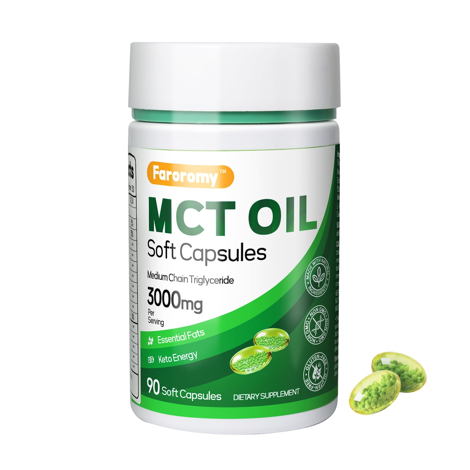 Faroromy MCT Oil Capsules combine 3000mg of C8 C10 MCTs with CLA, B12, and L-Theanine for clean energy, focus, and metabolism support. Non-GMO, gluten-free softgels ideal for keto, paleo, and active lifestyles—no mess, just fuel.