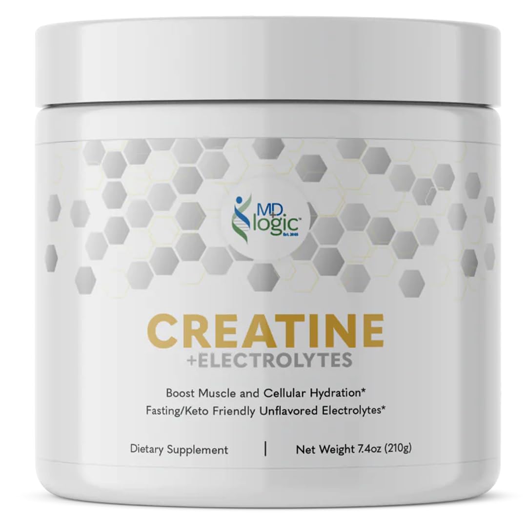 Enhance your physical performance with MD Logic Health's Creatine Electrolytes, a nutritional supplement designed for athletes and fitness enthusiasts. These ingredients work together to optimize hydration, muscle function, and strength, while also supporting memory, cognition, bone health, and fluid balance. With 30 servings in each 210g container, this unflavored, fasting keto-friendly powder is free from artificial colors, sweeteners, sugar, and sodium. Creatine Electrolytes is milk, egg, peanut, crustacean shellfish, tree nut, wheat, and soybean-free, making it suitable for a wide range of dietary needs.