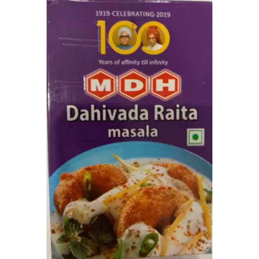 MDH dahivada Raita dahivada Raita Masala spices blend for curd recipe: It is a blend of various fragrant spices, which are roasted and then ground for use in various kind of Raita (finely chopped salad vegetables mixed with beaten natural yoghurt), dahi vada bhalla (fried lentil dumplings, soaked in water and mixed in natural yoghurt dressed with ginger shreds and tamarind sweat Chutney). sprinkle a tspn., salt, per serving and mix well. Ingredients: cumin, coriander seeds, Iodised salt, black salt, again, black pepper, yellow chillies, pomegranate seeds, kachri, mint leaves, dry mango. INGREDIENTS Coriander, Cumin powder, Salt White, Black Pepper, Yellow Chilli, Bishop weed, Salt Black, Cloves, Nutmeg ALLERGY ADVICE : MAY CONTAIN MUSTARD.