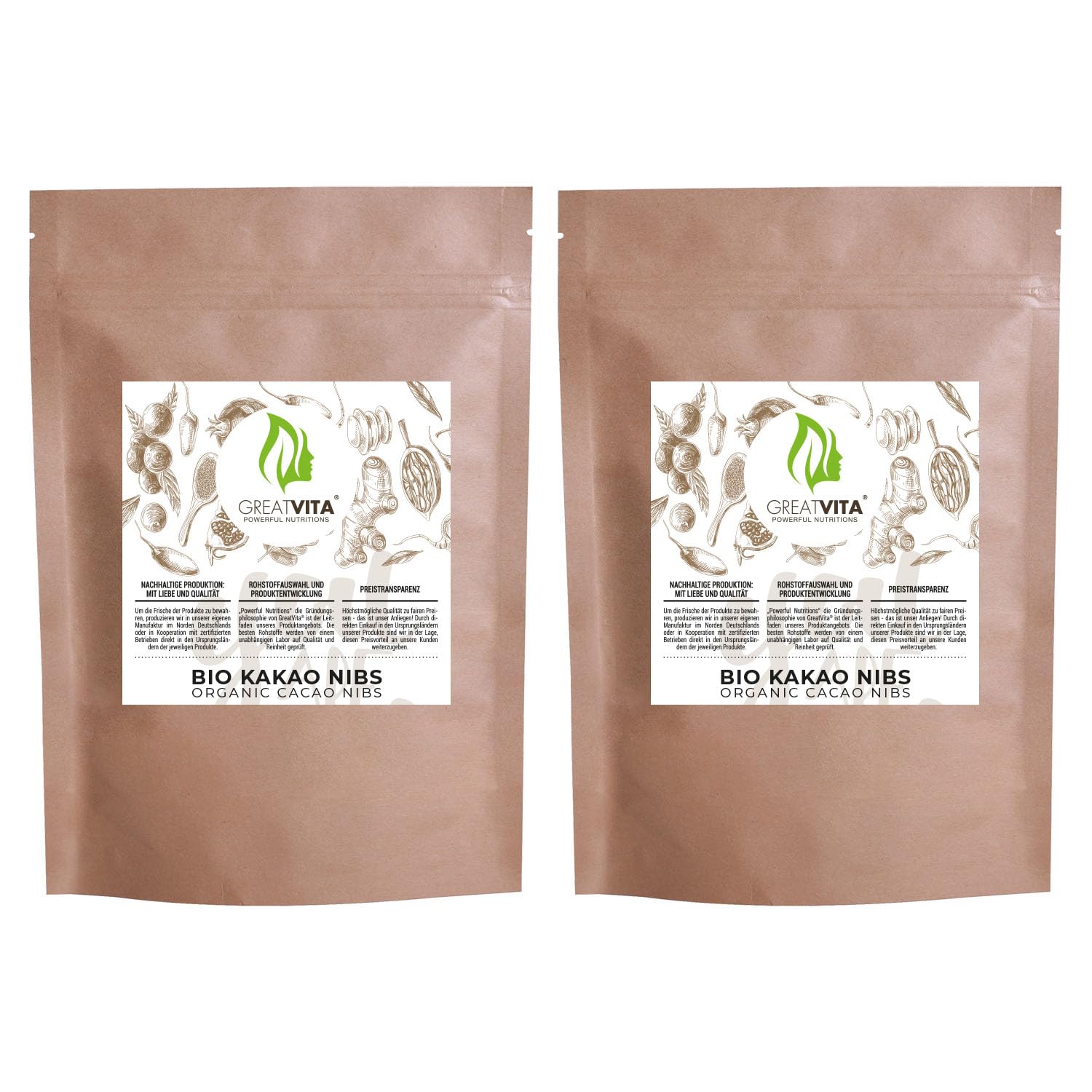 GreatVita Organic Cocoa with No Additives Our organic cocoa nibs are made from raw cocoa beans that are fermented with the pulp. This process breaks down the organic structures and releases the aromas. The dried cocoa beans are then peeled and broken into bite-sized pieces. Our cocoa nibs are extracted from purely organic cocoa beans and have a rich, intense cocoa flavor. Cocoa nibs are perfect for muesli, can be used to make cakes, and enhance any smoothie. ✓ Ideal as a topping. ✓ Intense flavor. ✓ 100 organic quality. ✓ No additives. Our organic cocoa jars are 100 free of added sweeteners. Our products are natural and may undergo natural variations in nutritional information depending on the season, harvest yield and product.