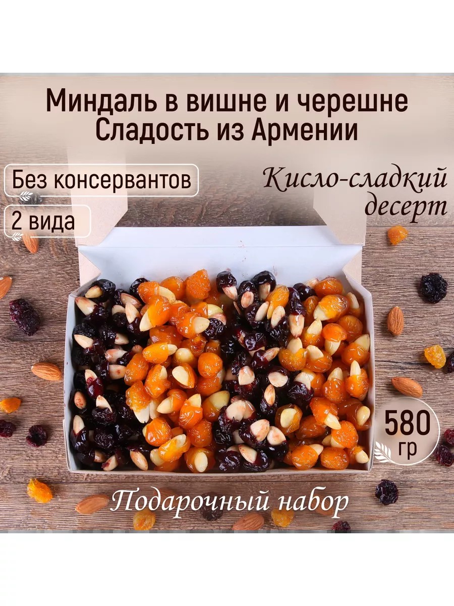 Подарочный набор миндаль в вишне и черешне ассорти в крафтовой коробке - это натуральная восточная сладость ручной работы из смеси сладких ягодных цукатов и сушёных очищенных орехов без сахара и обработки, правильный армянский пп продукт.Микс вяленых отборных ягод из Армении с миндальной начинкой - это ореховый и фруктовый десерт в боксе для уютных семейных чаепитий. Вкусный и съедобный новогодний подарок идеально подходит мужчине, девушке, женщине, девочке, маме, подруге, папе, парню, мужу, жене, бабушке, мальчику, другу, сестре, брату, дедушке, ребенку, коллеге, медику, тренеру, врачу, воспитателю, учителю. Орехи и сухофрукты - необычная идея для подарка на день рождения (др), 8 марта, День матери, Новый год (нг), 23 февраля, 14 февраля, юбилей, выпускной и на любой, даже детский праздник. Продукция Mealshop (Meal shop, милшоп) - это прекрасная альтернатива вредным конфетам, это интересные умные вкусняшки к чаю, которые подходят для детей и полезных перекусов.