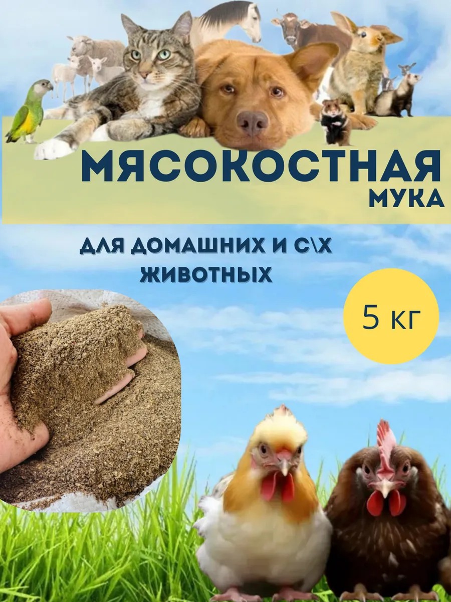 Также её добавляют в куриный корм в качестве витаминов для увеличения яйцоноскости у куриц. Добавление в ежедневный рацион животных способствует: укреплению иммунитета и стойкость организма к различным заболеваниям, увеличению мышечной массы и улучшению питательности мяса и яиц.Мясокостная мука может быть использована как самостоятельная добавка к основному корму или в качестве ингредиента для приготовления домашних лакомств.