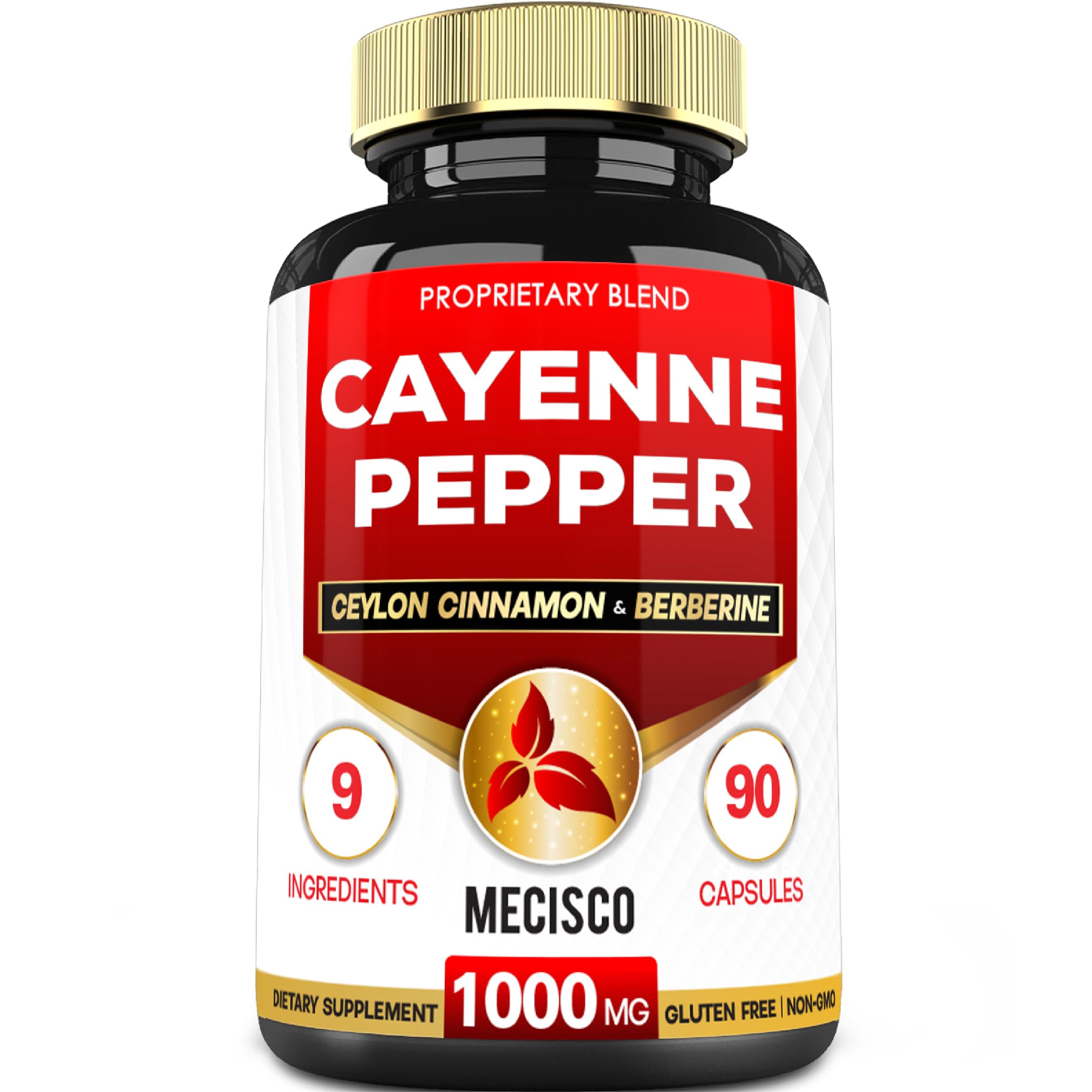 Mecisco Cayenne Pepper Supplements with Turmeric Curcumin Root Berberine HCl Ceylon Cinnamon Bark & More - 90 Capsules