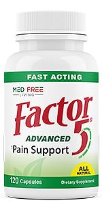 Med Free Living Factor 5 Advanced Pain Support Supplement 5 All-Natural Ingredients Provide Fast Relief - Supports Joint and Muscle Pain, Headaches and More (60 Veggie Capsules)