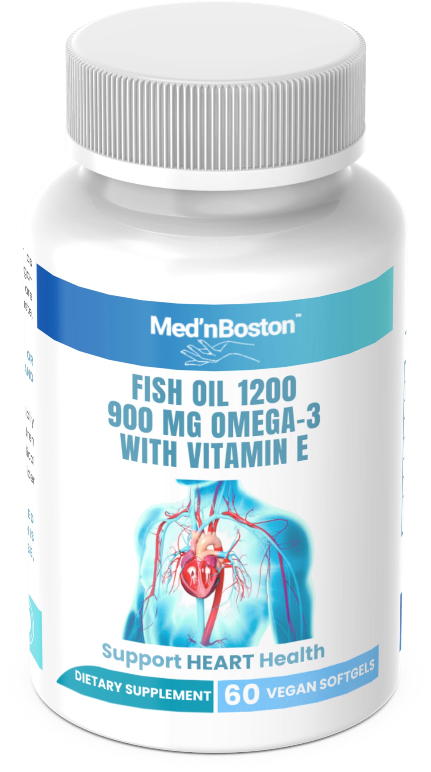 Med'nBoston Fish Oil 1200 900mg Omega-3 with Vitamin E 60 Vegan Softgels Heart & Brain Support