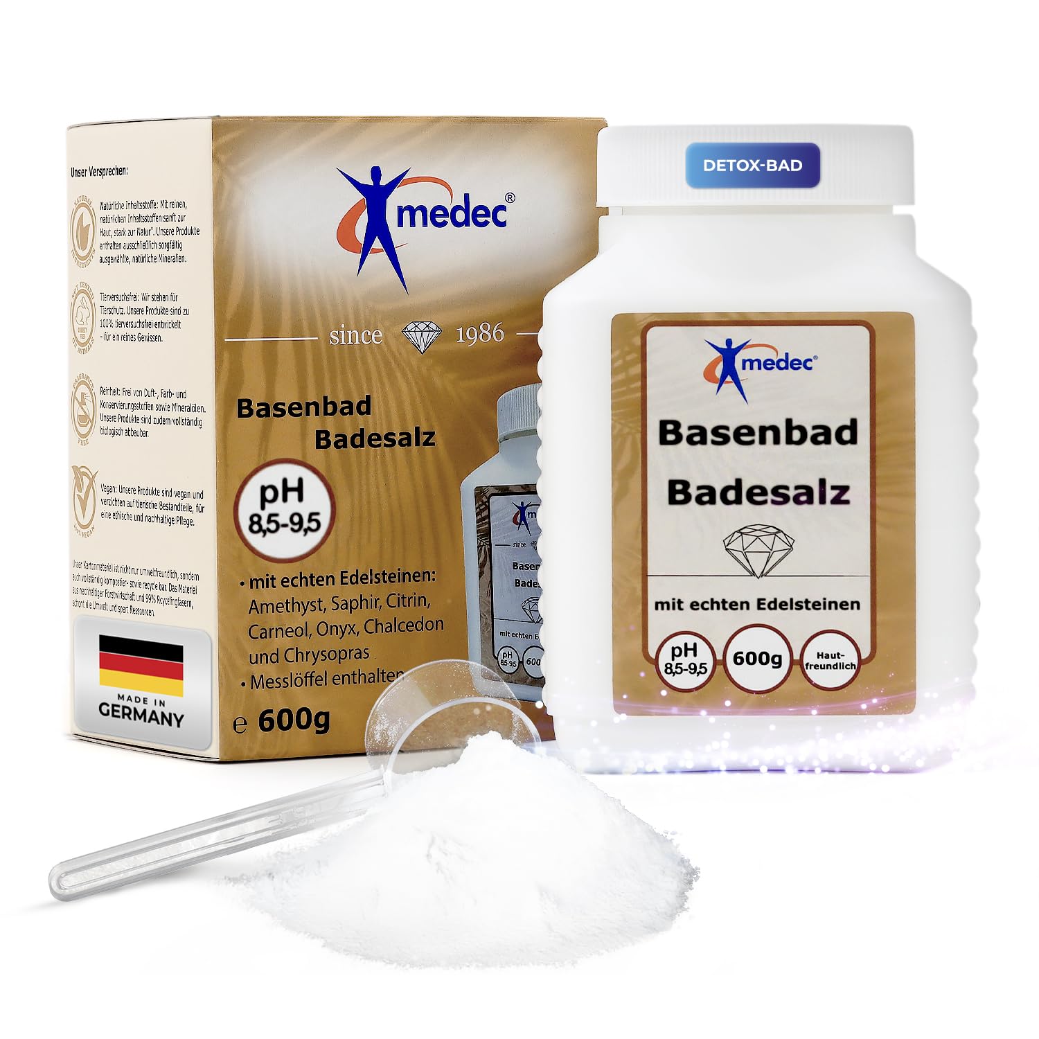 "Basic Bath Salts – For relaxation, detoxification, and well-being. Immerse yourself in the world of basic self-care with our premium basic bath salt. This versatile product combines the best properties of basic salts, basic salt baths, and basic bath salts to provide you with a relaxing and revitalizing bath experience. Ideal for a basic foot soak or as a refreshing ice bath salt, it supports your basic body care routine and ensures soft skin. Use our basic powder for a deep detoxifying bath, perfectly complemented by a detox bath additive, or as a muscle-relaxing bath additive. Our basic salts are perfect for basic baths, whether combined with Dead Sea bath salts or the popular Detox basic bath. The salt works similarly to a basic bath concentrate, basic marine bath salts, and organic basic bath salts. Pamper your skin with our basic bath additive." Perfect for a refreshing basic bath or as part of a holistic acid bath. Similar to a basic bath from the primordial sea, our basic bath is suitable for daily care. The effect on the skin is immediately noticeable and is enhanced by the bath salts and bases added to the bath. Treat yourself to moments of tranquility with our versatile detox bath. With our basic bath salts, you're choosing a product that not only detoxifies but also regenerates. Whether for a detoxifying foot soak, skin bath salts, or as part of a relaxing day, our product offers you the best care.Easy to use: If you are not satisfied with our basic bath salts, you will receive a 100 money-back guarantee, no questions asked! Easy to use: The basic bath [Basen Bath] is preservative-free and can be used like Dead Sea salt as a detoxifying foot soak. Easy to clean: The gemstone basic bath salts provide gentle basic bathing benefits, just like Dead Sea bath salts. Easy to use: Can be used as a complete basic bath, basic foot soak (also known as an Epsom salt bath), magnesium foot soak, and muscle-relaxing bath salt. Safe: Like Dead Sea bath salts, the basic salt produces a pH of 8.5 to 9.5. For body alkalization and soothing relaxation.medec Sels de bain basiques [avec de véritables pierres précieuses] 600 g de qualité alimentaire sel de bain basique détoxification et désintoxicationDESCRIPTION DU PRODUIT « Sels de bain de base – Pour la détente, la désintoxication et le bien-être. Plongez dans le monde des soins basiques avec notre sel de bain de base de qualité supérieure. Ce produit polyvalent combine les meilleures propriétés des sels basiques, des bains de sel de base et des sels de bain basiques pour vous offrir une expérience de bain relaxante et revitalisante. Idéal pour un bain de pieds basique ou un sel rafraîchissant pour bain de glace, il soutient votre soin corporel basique et assure une peau douce. Utilisez notre poudre de base pour un bain détoxifiant en profondeur, parfaitement complété par un additif de bain détox ou comme additif de bain relaxant musculaire. Nos sels de base sont parfaits pour les bains basiques, que ce soit en combinaison avec des sels de bain de la mer Morte ou le populaire bain de base Detox. Le sel fonctionne de manière similaire à un concentré de bain basique, des sels de bain basiques de la mer marine et des sels de bain basiques bio. Prenez soin de votre peau avec notre additif de bain basique. Parfait pour un bain de base rafraîchissant ou dans le cadre d'un bain acide holistique. Semblable à un bain de base de la mer primitive, notre bain basique est adapté pour les soins quotidiens. L'effet sur la peau est immédiatement perceptible et est complété par le sel de bain et les bases ajoutées au bain. Offrez-vous des moments de tranquillité avec notre bain détox polyvalent. Avec nos sels de bain de base, vous optez pour un produit qui non seulement détoxifie, mais aussi régénère. Que ce soit pour la désintoxication d'un bain de pieds, des sels de bain pour la peau ou dans le cadre d'une journée de détente, notre produit vous offre les meilleurs soinsFacile à utiliser : si vous n'êtes pas satisfait de nos sels de bain basiques, vous recevrez votre argent à 100 sans condition !. Facile à utiliser : le bain basique [Basen Bad] est exempt de conservateurs, sert comme sel de la mer morte de la mer morte comme un bain de pieds détoxifiant. Facile à nettoyer : le bain de base en pierre précieuse assure comme les sels de bain de mer morts (sel de mer morte) pour un bien-être doux des bains de base. Facile à utiliser : utilisable comme bain de base complet, bain de pieds basique (appelé bain de sel epsom), bain de pieds au magnésium et sel de bain relaxant musculaire. Sans danger : comme les sels de bain de la mer Morte, le sel de base produit un pH de 8,5 à 9,5. Pour la désacidification du corps et la relaxation apaisante.
