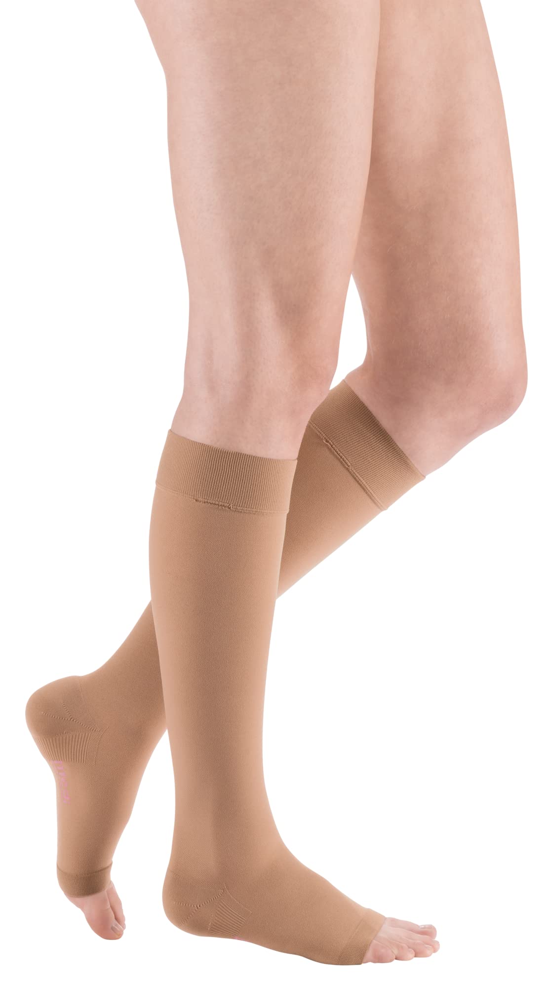 medi Duomed basic Kniestrümpfe ohne Spitze Unisex | Kurz | Kompressionsstrümpfe CCL2 für Damen und Herren | Caramel | Größe II