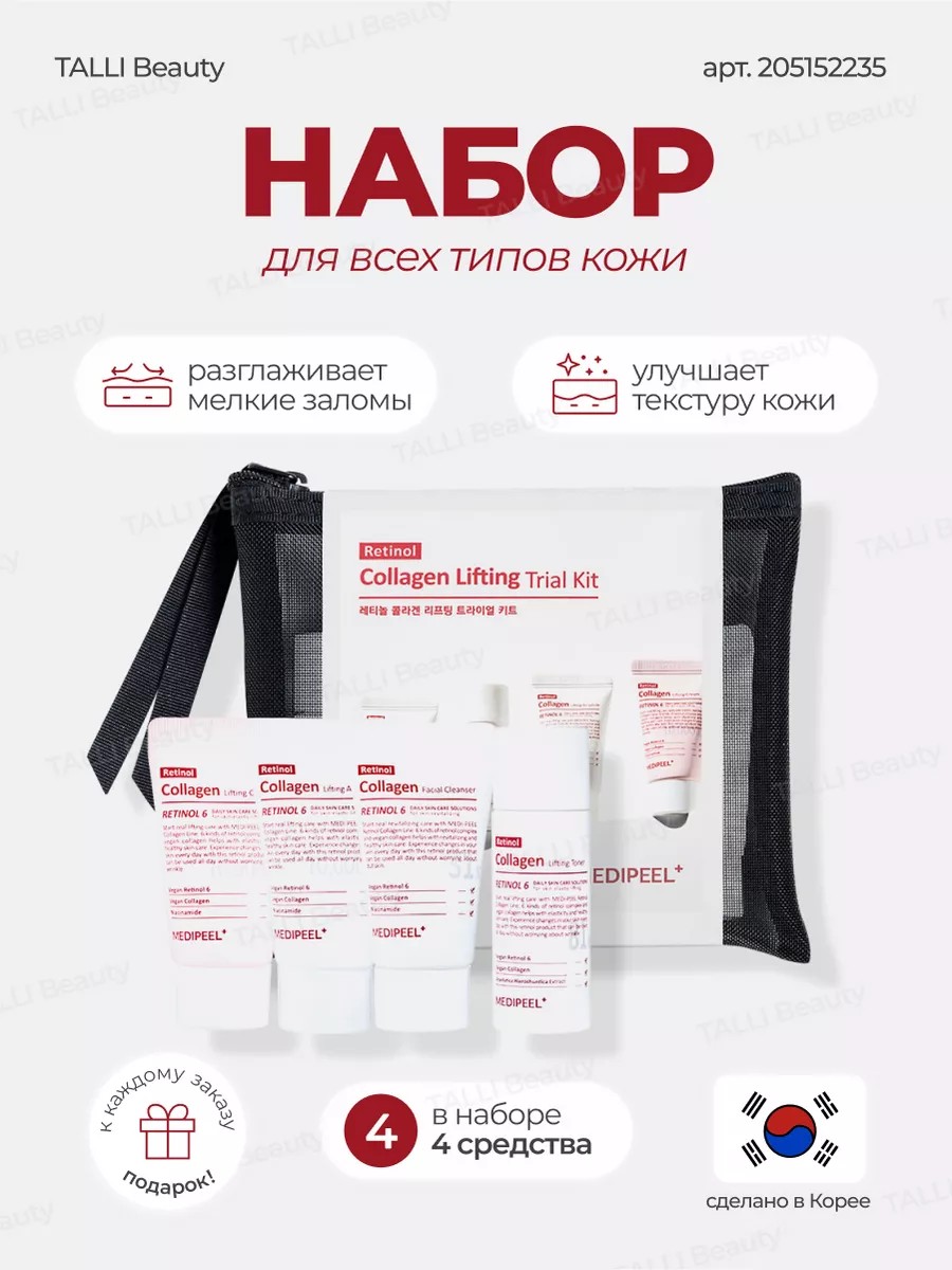 Набор миниатюр с ретинолом и коллагеном Medi-Peel Retinol Collagen Lifting Trial Kit Корея — это возможность попробовать омолаживающую линейку с ретинолом и коллагеном, которая запускает процессы обновления кожи.