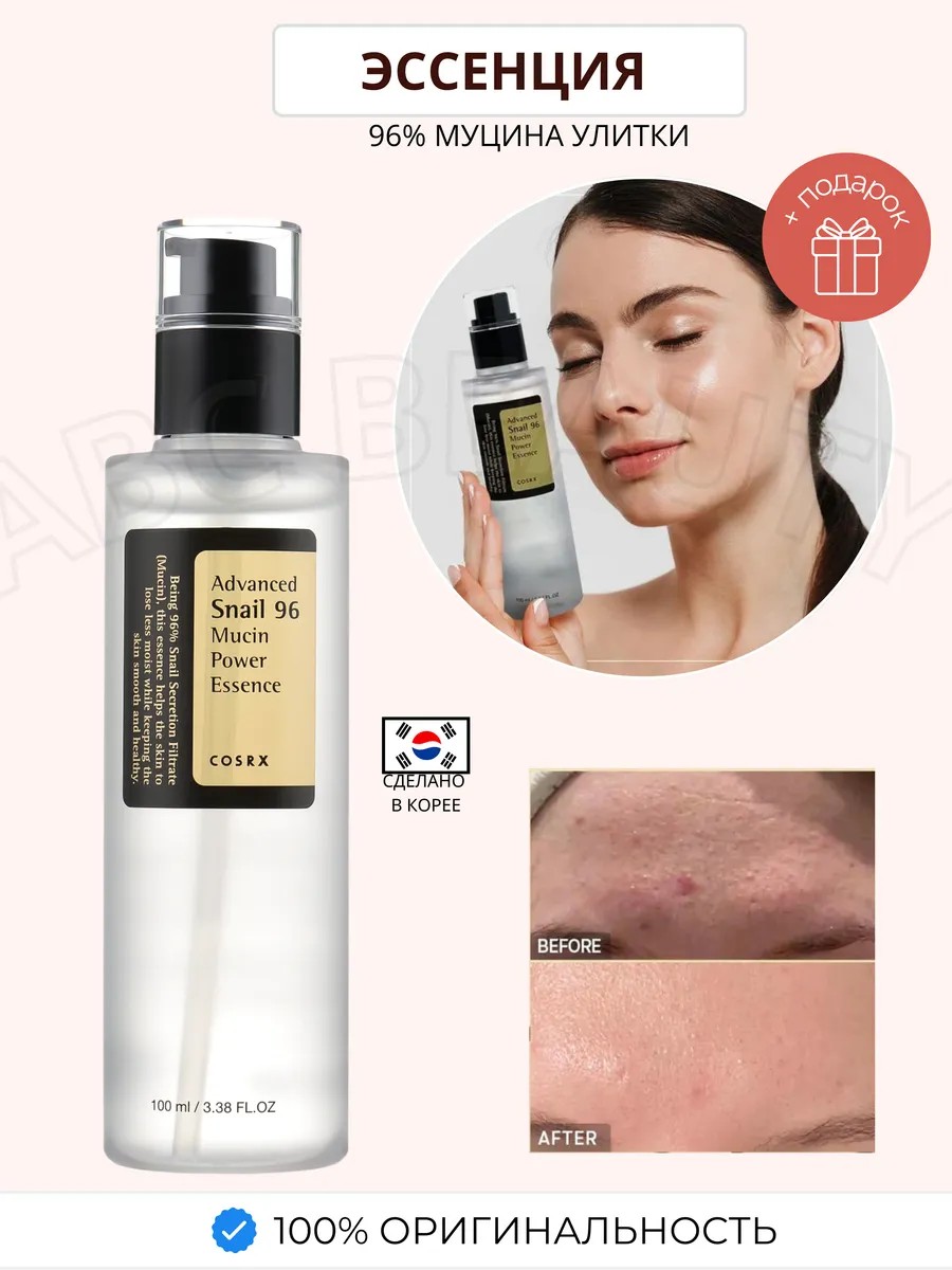 Высокоактивная эссенция для лица с 96% муцина улитки COSRX Advanced Snail 96 Mucin Power Essence благодаря высокой концентрации фильтрата муцина улитки оказывает комплексное действие на кожу: