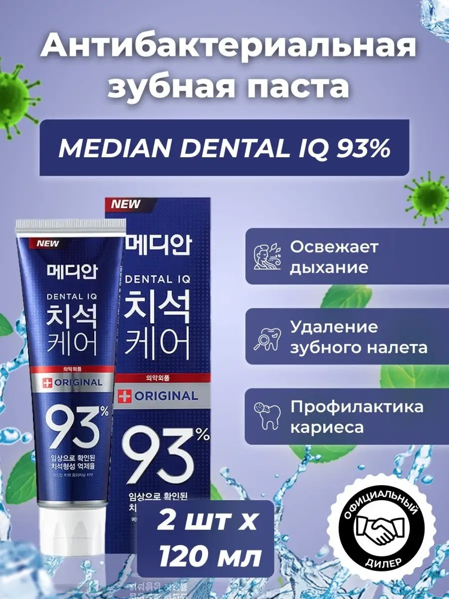 Зубная паста для эффективного удаления зубного налета и профилактики кариеса и воспаления десен Median 93% Original Toothpaste-Original Blue