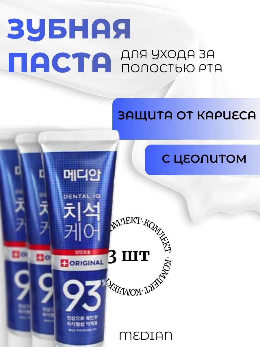 | Комплектация | Median Комплект 3 шт Зубная паста Защита от кариеса с цеолитом 120гр синяя Dental |