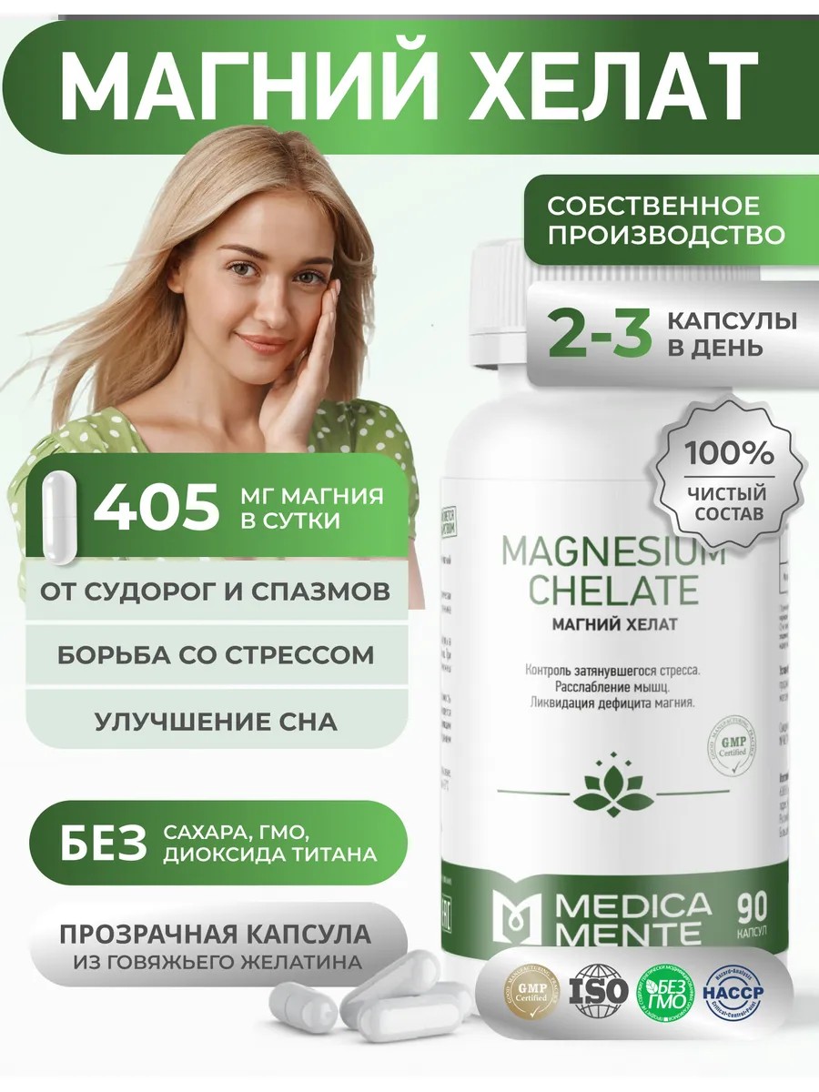 Магний хелат 400 мг витамины для нервной системы и сердца 90 капсул