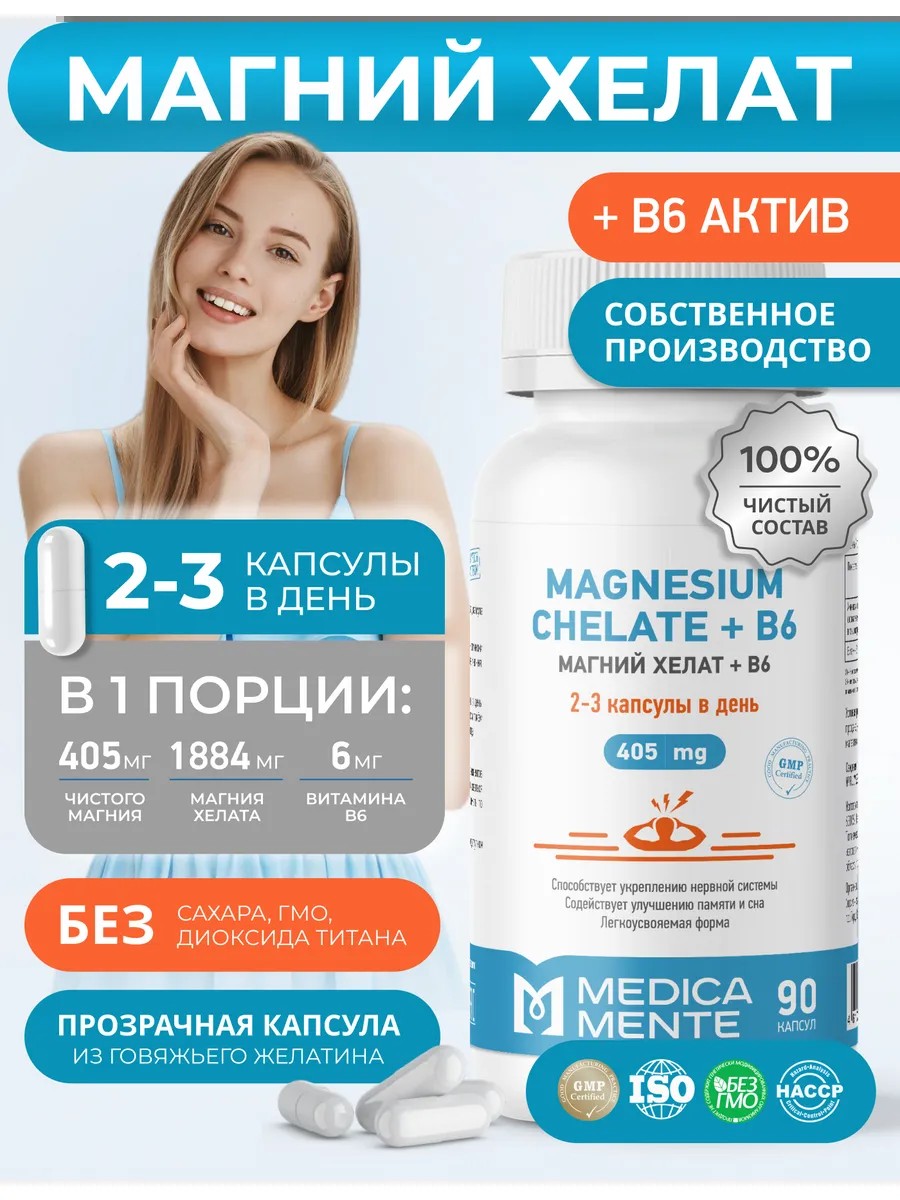 MEDICA MENTE Магний хелат с витамином В6 400 мг 90 капсул