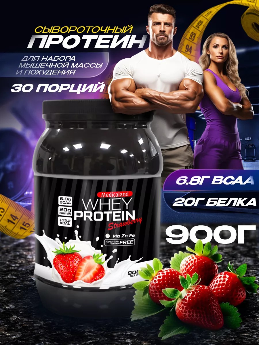 Протеин сывороточный клубничный, 900 гр, 30 порций