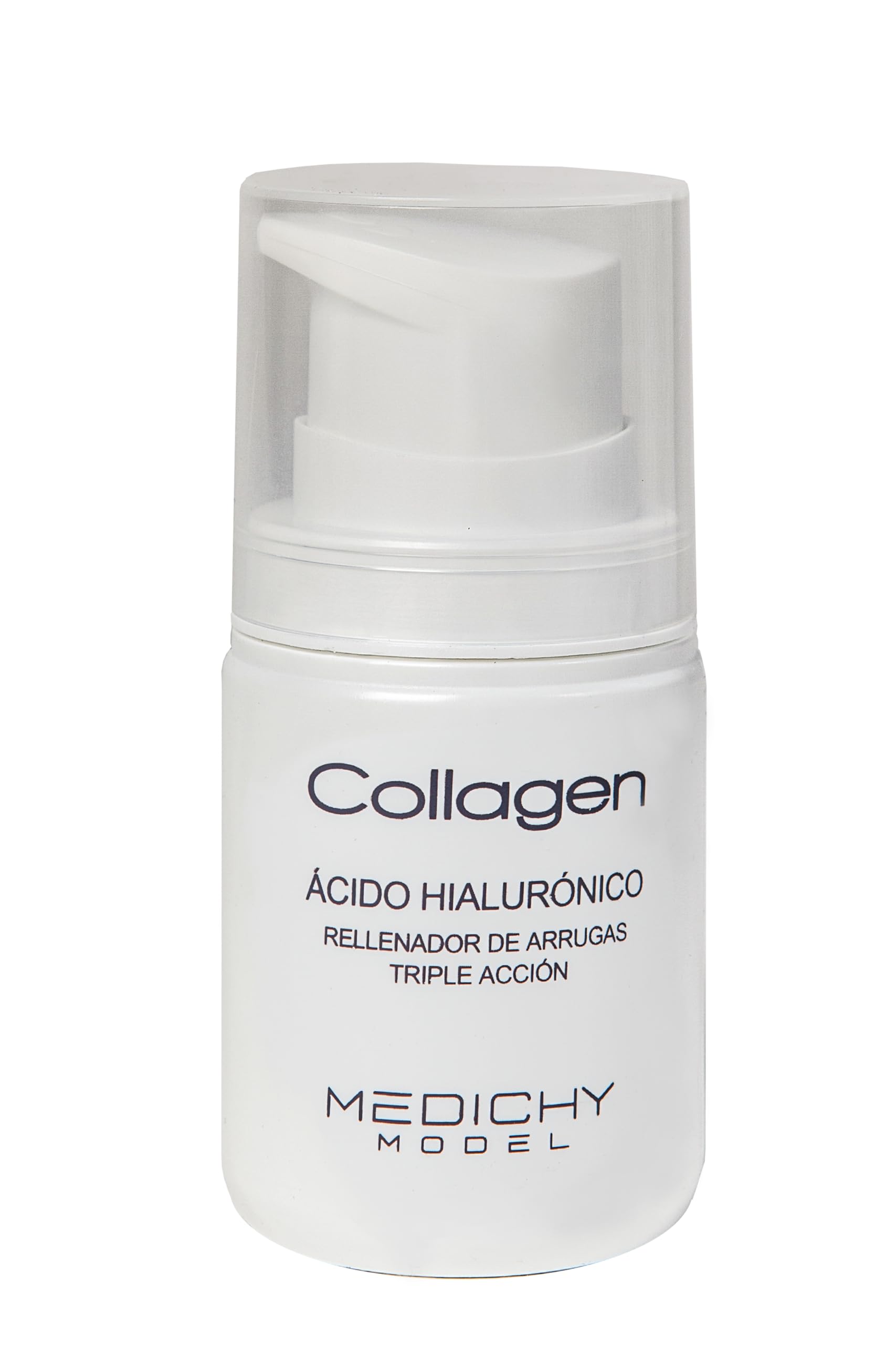 Hyaluronic Acid Collagen is an innovative, exclusive, and revolutionary treatment for correcting wrinkles a filling system for wrinkles caused by a lack of water and natural moisture. Hyaluronic Acid Collagen is also indicated for dehydration and dry skin. Formulated with biotechnologically sourced hyaluronic acid microspheres, Hyaluronic Acid Collagen contains two types of hyaluronic acid, one low and one high molecular weight. It provides a dual effect: an "express effect," which immediately fills and hydrates wrinkles, and a "long-lasting" effect, for deep and long-lasting hydration. Ingredients: aqua (WATER), GLYCERIN, PENTYLENE GLYCOL, ARACHIDYL ALCOHOL, CETEARYL ALCOHOL, GLYCERYL STEARATE, PEG-100 STEARATE, ETHYLHEXYL PALMITATE. CYCLOHEXASILOXANE BUTYLENE GLYCOL COCOATE. BEHENYL ALCOHOL. COCO-GLUCOSIDE. HYDROGENATED POLYDECENE. BUTYROSPERMUM PARKII (SHEA BUTTER). DIMETHICON. Sodium HYALURONATE. ARACHIDYL GLUCOSIDE SILIQUE. ALUMINUM STARCH OCTENYLSUCCINATE. ETHYLHEXYLGLYCERIN GLYCERYL CAPRYLATE. TOCOPHERYL ACETATE. SILIC DIMETHYL SILYLATE. BUTYLENE GLYCOL. BORON NITRIDE. CI 77891 (titanium dioxide). CI 77491 (IRON OXIDES). CYCLOPENTASILOXANE HEXYLENE GLYCOL. PERFUME (FRAGRANCE) LINALOOL. Citral. GERANIOL. HEXYL CINNAMAL. D-Limonene PHENOXYETHANOL. CAPRYLYL GLYCOL. INGREDIENTS Ingredients: Aqua (WATER). GLYCERIN PENTYLENE GLYCOL. ARACHIDYL ALCOHOL. CETEARYL ALCOHOL. GLYCERYL STEARATE. PEG-100 STEARATE. ETHYLHEXYL PALMITATE. CYCLOHEXASILOXANE BUTYLENE GLYCOL COCOATE. BEHENYL ALCOHOL. COCO-GLUCOSIDE. HYDROGENATED POLYDECENE. BUTYROSPERMUM PARKII (SHEA BUTTER). DIMETHICON. Sodium HYALURONATE. ARACHIDYL GLUCOSIDE SILIQUE. ALUMINUM STARCH OCTENYLSUCCINATE. ETHYLHEXYLGLYCERIN GLYCERYL CAPRYLATE. TOCOPHERYL ACETATE. SILIC DIMETHYL SILYLATE. BUTYLENE GLYCOL. BORON NITRIDE. CI 77891 (titanium dioxide). CI 77491 (IRON OXIDES). CYCLOPENTASILOXANE HEXYLENE GLYCOL. PERFUME (FRAGRANCE) LINALOOL. Citral. GERANIOL. HEXYL CINNAMAL. D-Limonene PHENOXYETHANOL. CAPRYLYL GLYCOL.Ideal for mature skin: Perfect for mature skin or skin showing signs of aging, restoring firmness and softness. Brightens the complexion: Hyaluronic acid makes skin more radiant and revitalized. Reduces wrinkles: Fights signs of aging, improves texture, and reduces fine lines. Firms the skin: Helps improve skin elasticity and firmness, visibly reducing wrinkles. Moisturizing formula: Hyaluronic acid attracts moisture, providing deep hydration that keeps skin soft and supple.MEDICHY MODEL Collagen Acide Hyaluronique - Hydratation et rajeunissement intensif - Formule anti-âge pour peau ferme et douce - 50 mlDESCRIPTION DU PRODUIT DESCRIPTION DU PRODUIT L'acide hyaluronique Collagen est un traitement innovant, exclusif et révolutionnaire pour corriger les rides un système de remplissage des rides qui ont été générées par manque d'eau et de crème naturelle. L'acide hyaluronique Collagen est également indiqué dans la déshydratation et la déshydratation cutanée. L'acide hyaluronique Collagen, formulé avec des microsphères d'acide hyaluronique d'origine biotechnologique, contient deux acides hyaluroniques, de faible et haut poids moléculaire, respectivement. Apporte un double effet : « effet express », qui remplit et hydrate immédiatement les rides et l'effet « long-lasting », pour une hydratation profonde et de longue durée. Ingrédients ingrédients : aqua (WATER). GLYCERIN PENTYLENE GLYCOL. ARACHIDYL ALCOHOL. CETEARYL ALCOHOL. GLYCERYL STEARATE. PEG-100 STEARATE. ETHYLHEXYL PALMITATE. CYCLOHEXASILOXANE BUTYLENE GLYCOL COCOATE. BEHENYL ALCOHOL. COCO-GLUCOSIDE. HYDROGENATED POLYDECENE. BUTYROSPERMUM PARKII (SHEA BUTTER). DIMETHHICONE. Sodium HYALURONATE. ARACHIDYL GLUCOSIDE SILIQUE. ALUMINUM STARCH OCTENYLSUCCINATE. ETHYLHEXYLGLYCERIN GLYCERYL CAPRYLATE. TOCOPHERYL ACETATE. SILIQUE DIMETHYL SILYLATE. BUTYLENE GLYCOL. BORON NITRIDE. CI 77891 (titane dioxyde). CI 77491 (IRON OXIDES). CYCLOPENTASILOXANE HEXYLENE GLYCOL. PARFUM (FRAGRANCE) LINALOOL. Citral. GERANIOL. HEXYL CINNAMAL. D-Limonene PHENOXYETHANOL. CAPRYLYL GLYCOL. INGRÉDIENTS Ingrédients : Aqua (WATER). GLYCERIN PENTYLENE GLYCOL. ARACHIDYL ALCOHOL. CETEARYL ALCOHOL. GLYCERYL STEARATE. PEG-100 STEARATE. ETHYLHEXYL PALMITATE. CYCLOHEXASILOXANE BUTYLENE GLYCOL COCOATE. BEHENYL ALCOHOL. COCO-GLUCOSIDE. HYDROGENATED POLYDECENE. BUTYROSPERMUM PARKII (SHEA BUTTER). DIMETHHICONE. Sodium HYALURONATE. ARACHIDYL GLUCOSIDE SILIQUE. ALUMINUM STARCH OCTENYLSUCCINATE. ETHYLHEXYLGLYCERIN GLYCERYL CAPRYLATE. TOCOPHERYL ACETATE. SILIQUE DIMETHYL SILYLATE. BUTYLENE GLYCOL. BORON NITRIDE. CI 77891 (titane dioxyde). CI 77491 (IRON OXIDES). CYCLOPENTASILOXANE HEXYLENE GLYCOL. PARFUM (FRAGRANCE) LINALOOL. Citral. GERANIOL. HEXYL CINNAMAL. D-Limonene PHENOXYETHANOL. CAPRYLYL GLYCOL.Idéal pour les peaux matures : parfait pour les peaux matures ou présentant des signes de vieillissement, redonnant fermeté et douceur. Apporte de la luminosité : l'acide hyaluronique rend la peau plus radieuse et revitalisée. Réduction des rides : combat les signes du vieillissement, améliore la texture et réduit les ridules. Raffermit la peau : aide à améliorer l'élasticité et la fermeté de la peau, réduisant visiblement les rides. Formule hydratante : l'acide hyaluronique attire l'humidité, fournissant une hydratation profonde qui maintient la peau douce et souple.