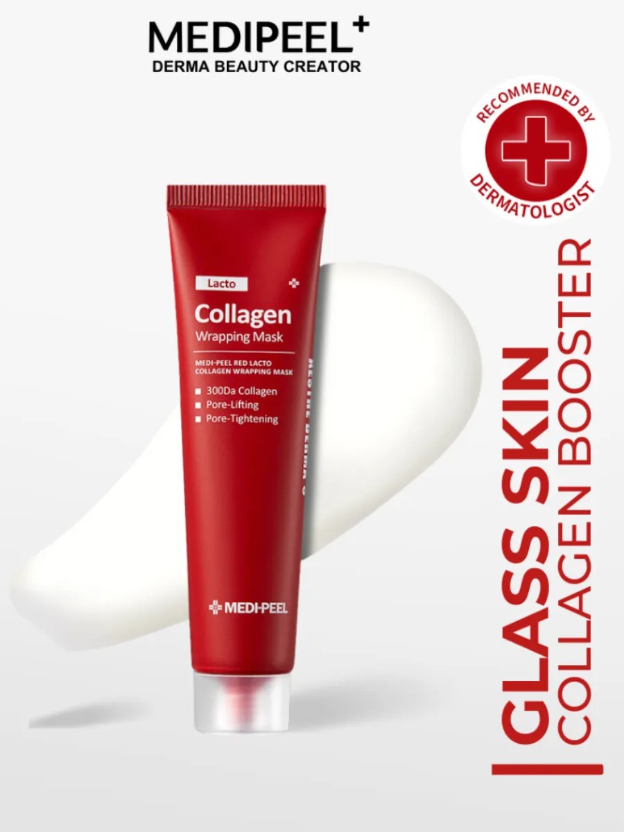 Medi-Peel Lacto Collagen Wrapping Mask is an anti-aging facial mask that works to firm skin, tighten pores, and improve texture.