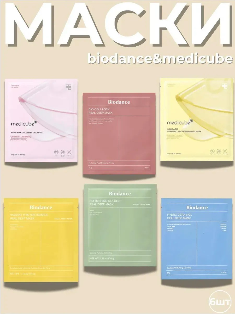 | Комплектация | MEDICUBE BIODANCE Gel Mask набор гидрогелевых масок 6шт |