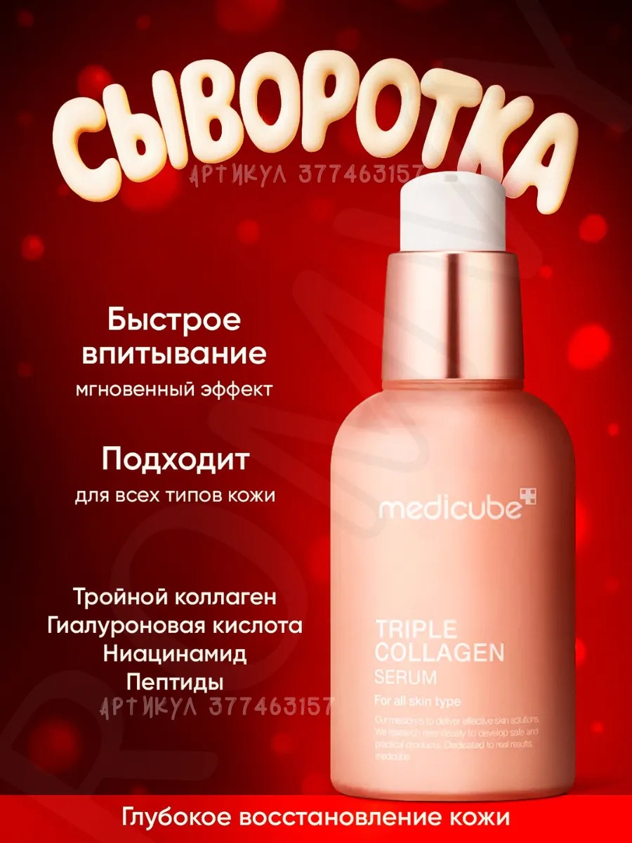 Medicube Triple Collagen Serum – омолаживающая сыворотка с тройным коллагеном, ниацинамидом и гиалуроновой кислотой