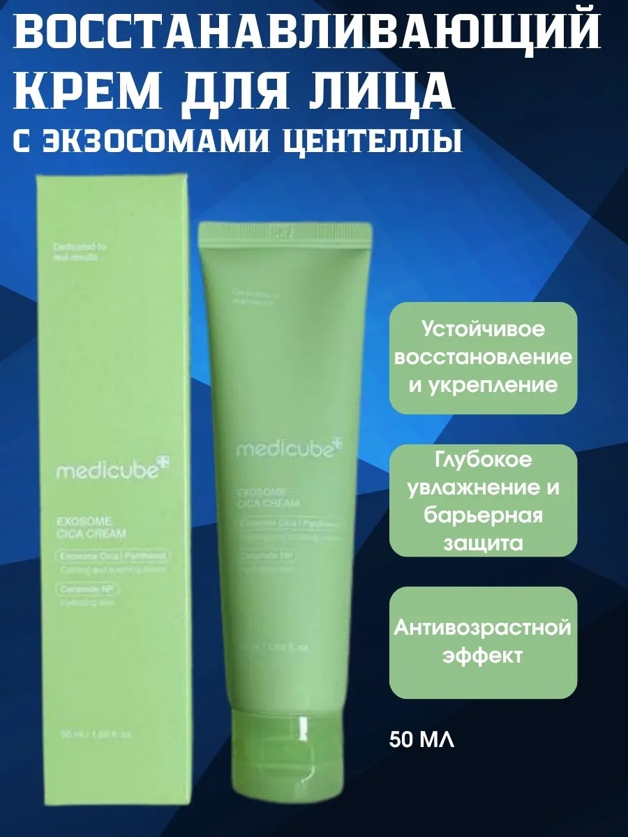 Премиальный восстанавливающий крем с экзосомами центеллы азиатской (cica) Exosome Cica Cream, создан для интенсивного ухода за проблемной, раздражённой, чувствительной или повреждённой кожей. Подходит для применения в периоды восстановления после процедур, а также как ежедневный увлажняющий крем для склонной к покраснениям кожи.