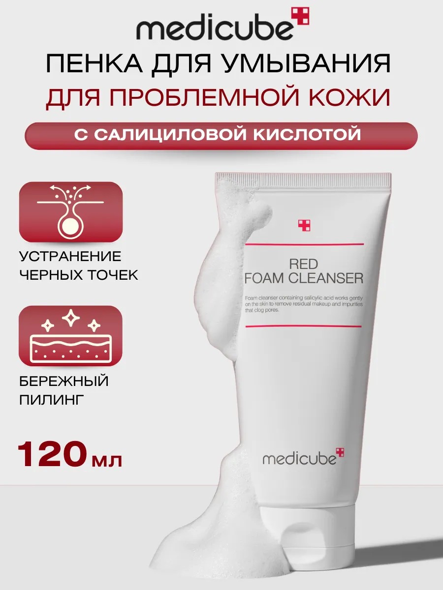 Пенка для умывания лица от прыщей Medicube Red Foam Cleanser обеспечивает бережное очищение и уход за кожей как женщин, так и мужчин. Эта корейская очищающая косметика разработана для эффективного ухода за проблемной и жирной кожей. Основным компонентом продукта является 0.5% салициловая кислота, известная своими свойствами борьбы с акне и предотвращения появления новых высыпаний. Этот ингредиент проникает в поры, эффективно устраняя загрязнения и излишки себума, что делает средство особенно полезным для жирной кожи. Также содержит экстракт софоры, который обладает успокаивающим эффектом и восстанавливает защитный барьер кожи. Средство станет отличным выбором для комбинированной кожи: уменьшает количество комедонов, уменьшает черные точки, снижает жирный блеск. Очищающая пенка идеально подходит не только для умывания, но и для снятия макияжа. Она бережно удаляет базовый макияж, оставляя кожу свежей и увлажненной. Сбалансированная формула предотвращает пересушивание кожи после использования. Эта уходовая косметика будет отличным подарком для тех, кто заботится о состоянии своей кожи и хочет получить заметные результаты в борьбе с проблемами кожи. Подходит как для ежедневного использования, так и в качестве дополнительного этапа ухода. Подходит для кожи подростков. Выберите матирующую пенку корейского бренда Medicube — она станет надежным помощником в вашем эффективном уходе за кожей.