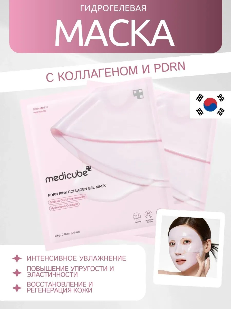 КомплектацияMEDICUBE PDRN Pink Collagen Gel Mask гидрогелевые маски 1шт