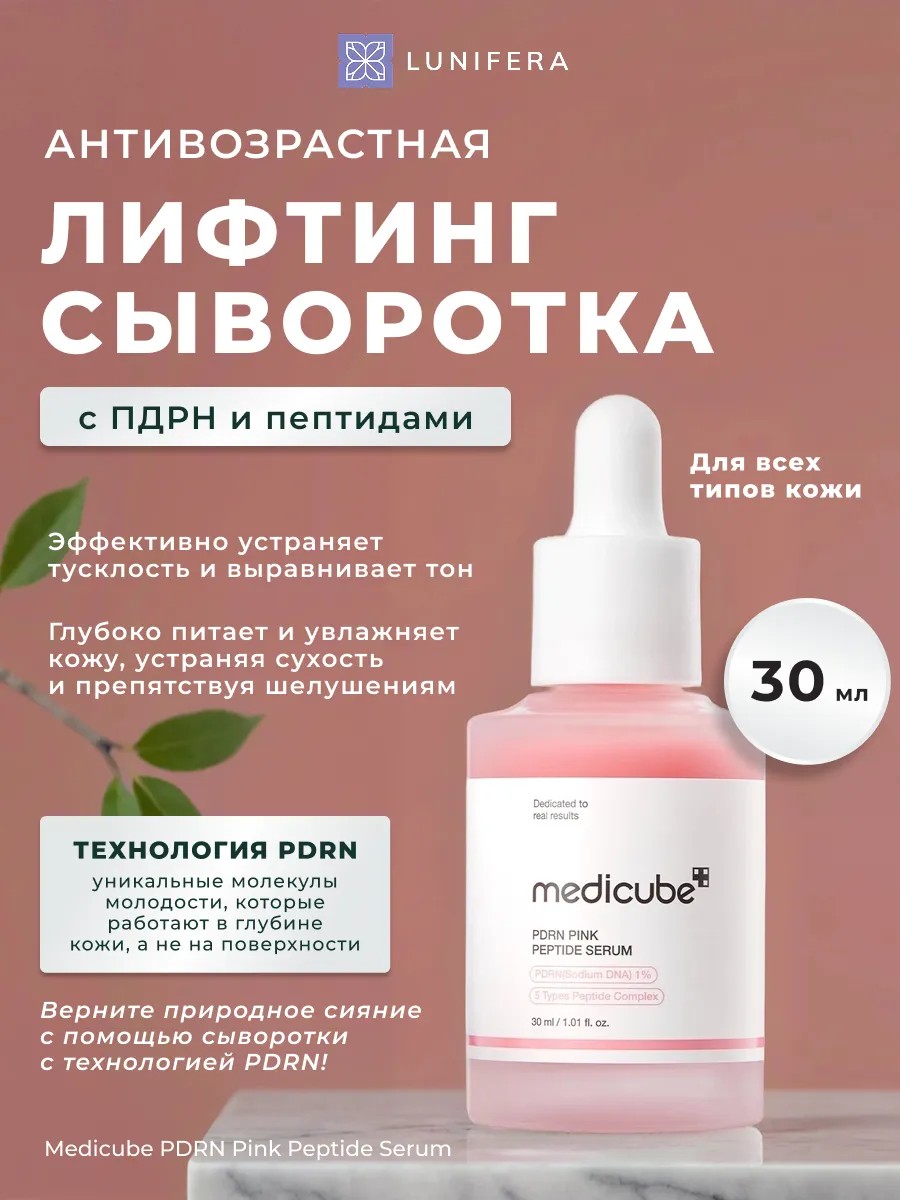Лифтинг-сыворотка ПДРН с пептидами антивозрастная Medicube PDRN Pink Peptide Serum — это идеальное решение для восстановления жизненной энергии кожи и возвращения ей упругости. Основной активный компонент, PDRN (полидезоксирибонуклеотиды), помогает ускорить регенерацию, предотвращая преждевременное старение и оживляя тусклую кожу. Этот уникальный состав питает, увлажняет и повышает эластичность, возвращая лицу здоровое сияние.