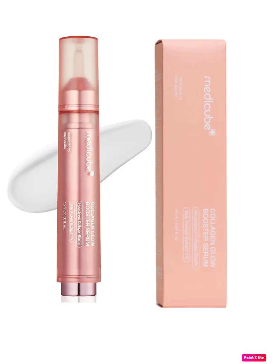 Medicube Collagen Glow Booster Serum evens out skin texture and tone, reduces the appearance of wrinkles and fine lines, and improves firmness and elasticity.
