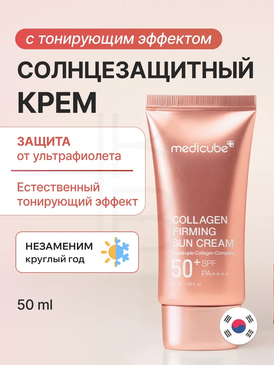 Medicube Collagen Firming Sun Cream SPF 50+ PA++++: корейский солнцезащитный крем с тонирующим эффектом