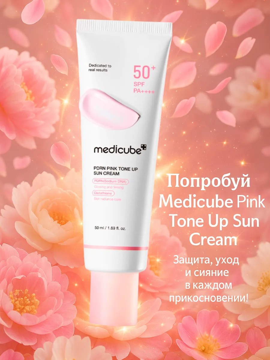 Medicube PDRN Pink Tone Up Sun Cream - Осветляющий солнцезащитный крем с PDRN и SPF 50+