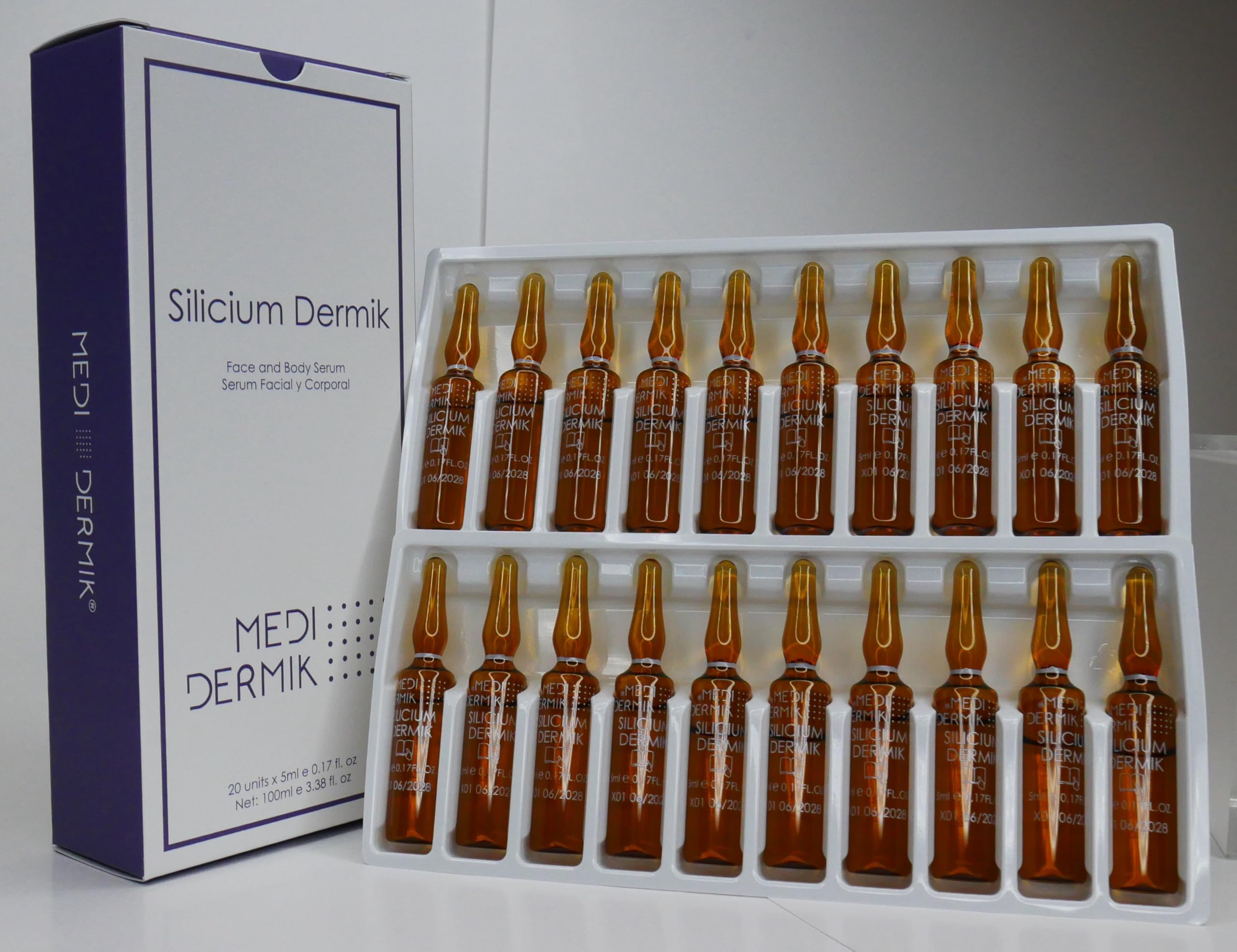 MEDIDERMIK SILICIUM. It works in saggy and damaged skin. Increases elasticity. Aestheticians' favorite liquid ampoules. 20 ampoules 20x5ml/20x0 17fl.oz.