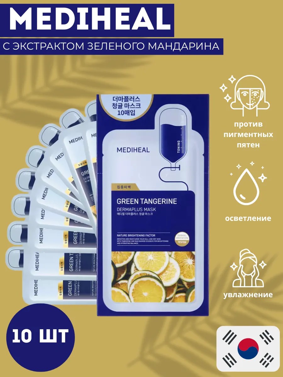 MEDIHEAL Green Tangerine Маска с экстрактом зеленого мандарина, 10 шт