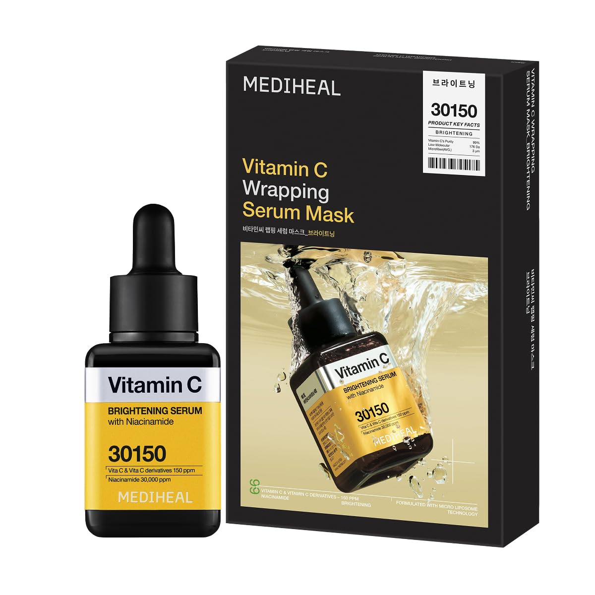 MEDIHEAL Vitamin C Brightening Serum & Mask Skin Care Duo Set for Radiance Care - Evens SkinTone for Uneven & Dull Skin - Niacinamide Vitamin C