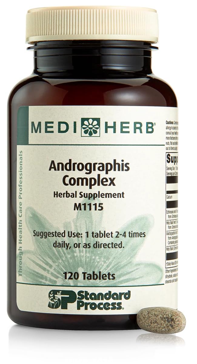 Andrographis Complex contains a blend of herbs to support normal immune system function. Andrographis, Echinacea angustifolia root and Holy Basil provide a unique range of phytochemicals including diterpenoid lactones (collectively referred to as andrographolides), flavonoids, caffeic acid derivatives (especially echinacoside and cynarin), alkylamides, essential oil (rich in monoterpenes and sesquiterpenes, typically eugenol) and polyphenols. The Andrographis component of this tablet is standardized to contain 10 mg of andrographolide per tablet to ensure optimal strength and quality. This herbal formulation works to: help maintain healthy immune system function support healthy respiratory system function support and maintain normal body temperature already in a normal range support healthy immune system response encourage adaptive response to occasional everyday stress promote healthy liver function