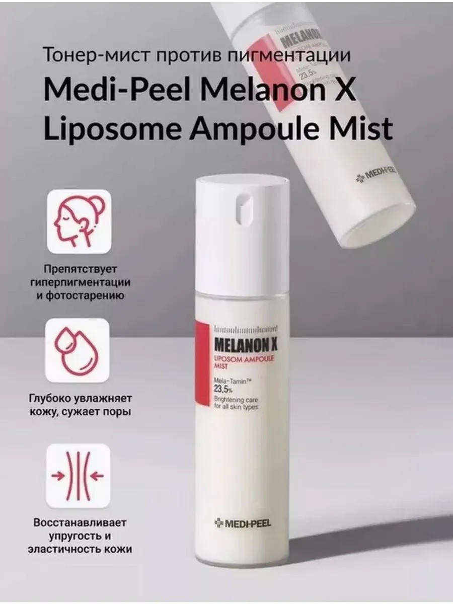 Ампульный тонер-мист Medi-Peel Melanon X Liposome Ampoule Mist борется с пигментацией и морщинами, моментально освежая и увлажняя кожу.