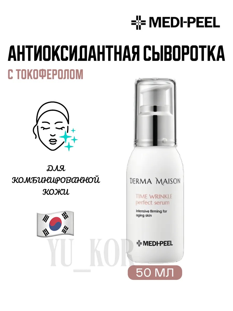 MEDI-PEEL Derma Maison Time Wrinkle Perfect Serum, a rejuvenating serum with tocopherol, maintains skin firmness and elasticity, accelerates collagen synthesis, and strengthens turgor.