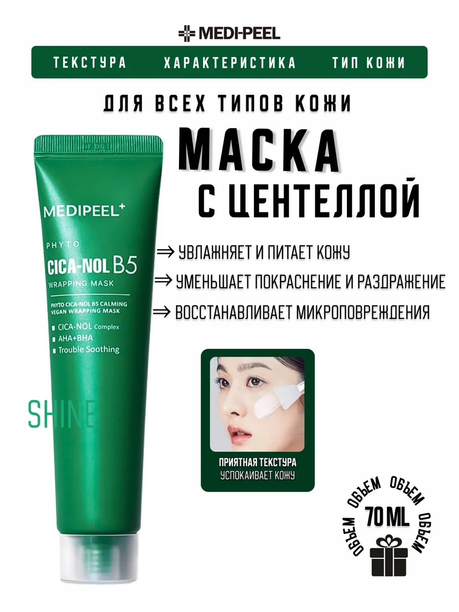 Успокаивающая маска-плёнка MEDI-PEEL Phyto Cica-Nol B5 Calming Vegan Wrapping Mask увлажняет и питает кожу, уменьшает покраснение и раздражение, выравнивает тон и придаёт здоровое сияние, усиливает эффект предыдущих средств по уходу.