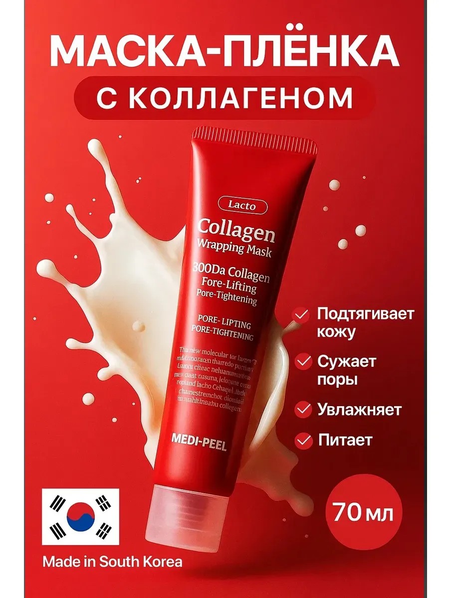 Выбирайте Medi-Peel Red Lacto Collagen Wrapping Mask — маску для лица корейскую, чтобы подарить коже молодость, свежесть и красоту!