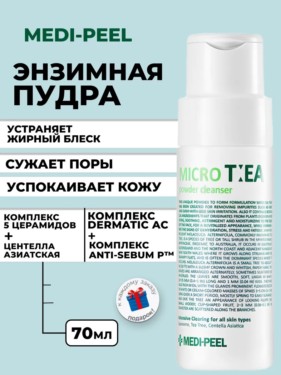 Глубоко очищающая энзимная пудра с чайным деревом Medi-Peel Micro Tea Powder Cleanser — это удивительное средство, которое обеспечивает глубокое очищение кожи, не пересушивая ее. Она эффективно удаляет все виды загрязнений, включая пыль, излишки кожного сала и стойкий макияж, растворяя сальные пробки и устраняя жирный блеск. Регулирует выработку кожного сала, сужает поры и выравнивает микрорельеф, делая кожу сияющей и свежей.