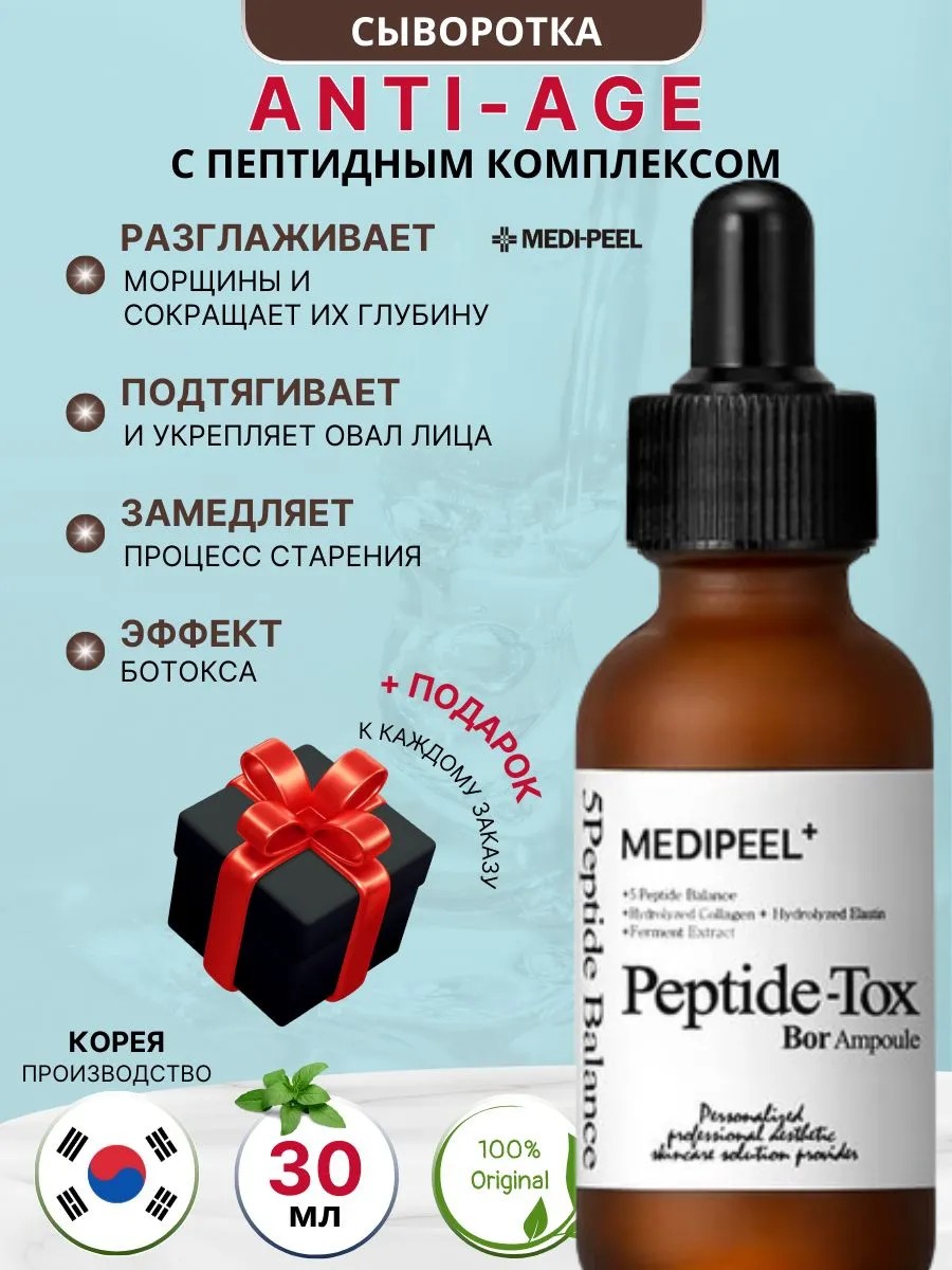 | Комплектация | Лифтинг-сыворотка с пептидным комплексом MEDIPEEL Peptide-Tox Bor Ampoule 30 мл |